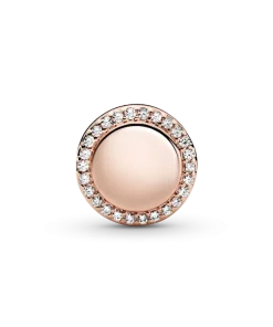 Add this simple-yet-sleek charm to your Pandora collection. This polished Engravable Sparkling Button Charm is hand-finished in 14k rose gold plating, and features 52 bead-set round brilliant-cut clear cubic zirconia stones in a delicate ring. This Pandora piece is all about self-expression: choose to keep it blank and let the symbol speak for itself or engrave the front, the back or both. Pandora Engraving is only available in select stores and markets.