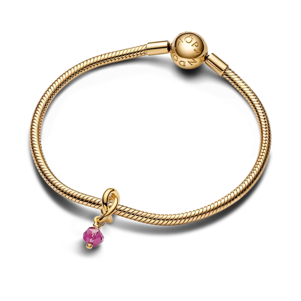 Wear a symbol of forever, that’s personal to you. This 14k gold-plated dangle charm is made up of a triple knotted circle that intertwines to resemble an infinity sign. The twist carries a faceted phlox pink man-made crystal, which dangles from the charm. Wear yours to add a drop of color to your carrier, or gift it to the one you want in your life forever.