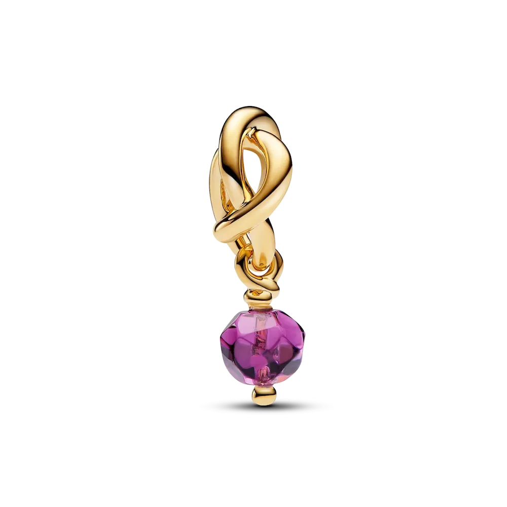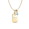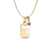Celebrate love and connection with the February Engravable Dangle Charm Necklace Set. This set features the versatile Rolo Chain Necklace, made from polished 14k gold-plated metal, and an Engravable Rectangle Tag Pendant that you can personalize to make it your own. The February Charm brings a sweet touch with its grape purple crystal, dangling from a knotted infinity circle. It’s the ideal symbol of affection, making it a perfect piece for expressing love during the month of romance.