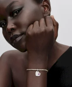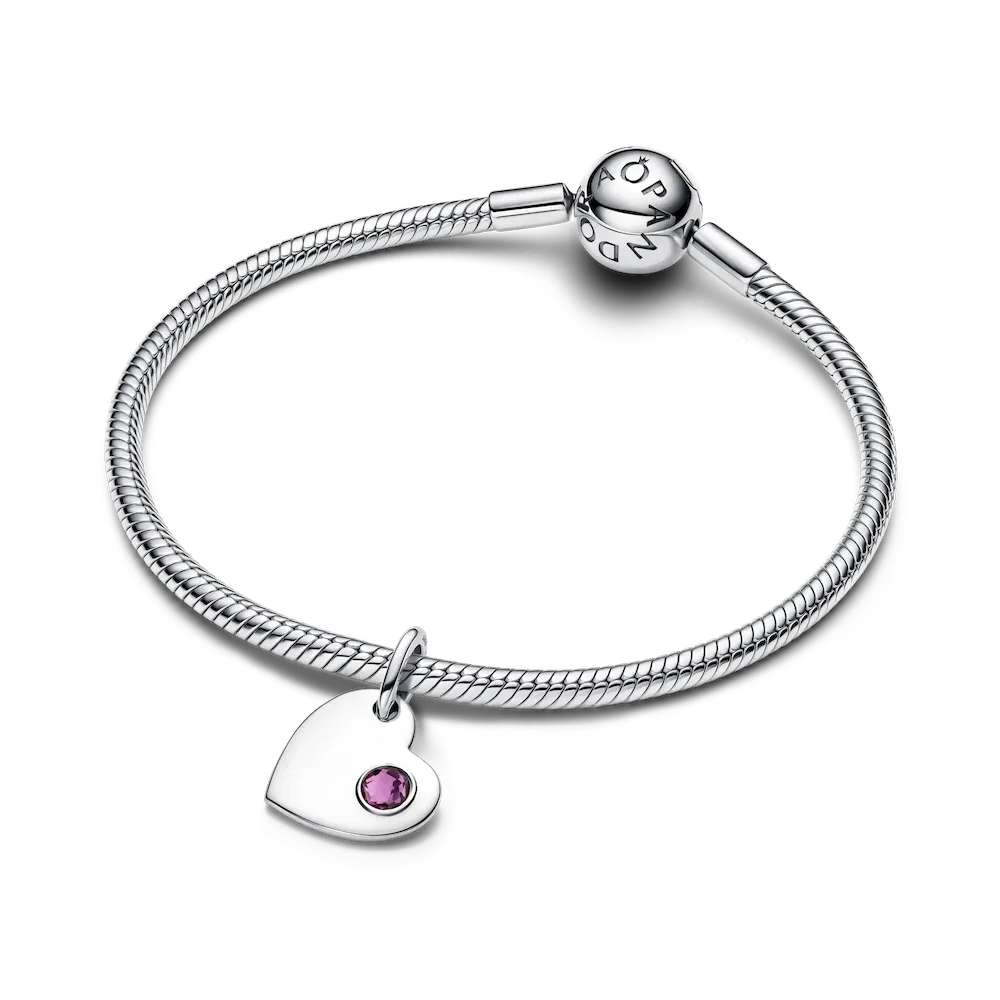 Wear your heart on your sleeve, literally. This sterling silver dangle charm pairs a purple man-made crystal with a smooth back — a symbol of love and personal meaning.