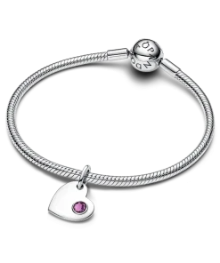 February Heart Purple Stone Heart Dangle Charm