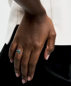 Wear a symbol of forever with the Green Eternity Circle Ring. This sterling silver ring features one claw-set sparkling royal green man-made crystal. The polished band wraps around the center stone in an openwork braided infinity pattern. Whether you want to carry a reminder of eternal love or a symbol of the timeless joy that infuses each and every moment, this colorful eternity ring will bring sparkling meaning to your look.