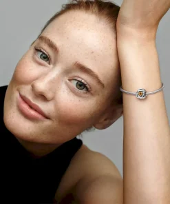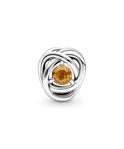 The November Birthday Necklace Set makes a stunning complement to your fall fashion in warm tones of honey contrasted with sleek sterling silver. It includes a Classic Cable Chain Necklace, a snake-chain patterned Pandora Moments Small O Pendant, and the Honey Eternity Circle Charm with openwork infinity braiding design and a honey-hued man-made crystal in the center.