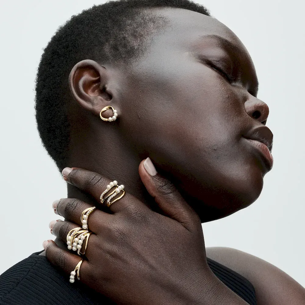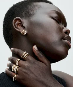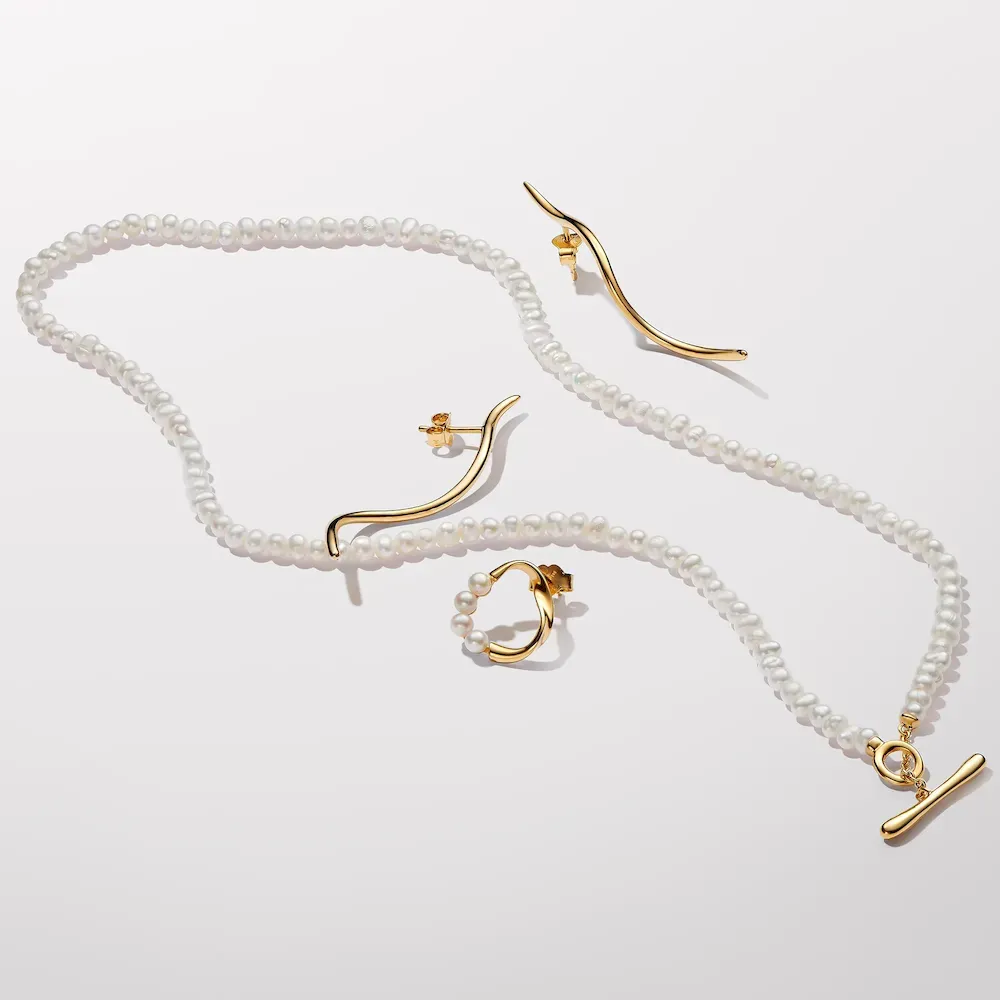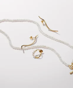 Introducing a new kind of classic with the Organically Shaped Circle & Treated Freshwater Cultured Pearls Stud Earrings. Each earring features four treated freshwater cultured pearls along one-third of a slightly twisted, organic-looking 14k gold-plated oval with varying thickness. Each treated freshwater cultured pearl is unique and can vary in size and color; normal wear and tear may occur with this material. Our freshwater cultured pearls are treated with bleaching and luster enhancement.