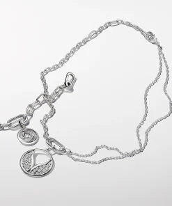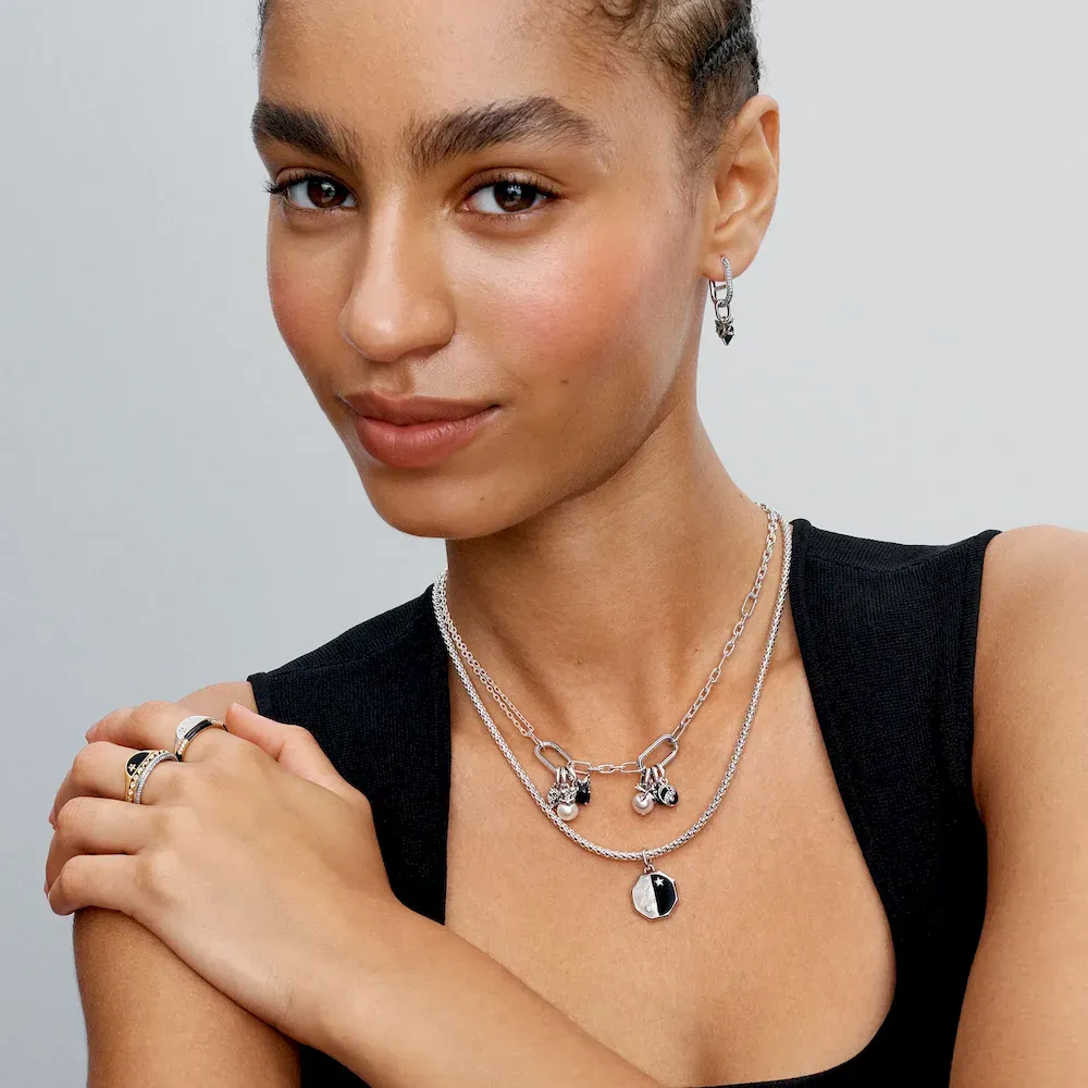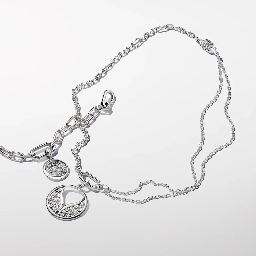 Our sterling silver Pandora ME Double Link Chain Necklace has endless styling possibilities, featuring two openable links – designed with grooved lines to set them apart – five links between each openable link and a small carabiner clasp closure. Half of the necklace links up to a double chain detail, adding an individual edge to the chain. You can keep the original length, make your link chain longer or turn it into a choker, all by adding and taking away links to suit you. Once you’ve customized your link chain, remix it with meaningful medallion charms and mini dangle charms on the openable links to tell your story.