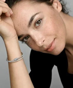 Double the style on your wrist with the Pandora Moments Double Wrap Barrel Clasp Snake Chain Bracelet/Necklace. This sterling silver double wrap bracelet features a snake chain pattern and a barrel clasp embellished with clear cubic zirconia pavé. The bracelet has four threaders, allowing for endless styling possibilities: Unwrap it to style it as a necklace or wear it as a bracelet and load it up with your favorite charms (it can fit up to 18 to 25).