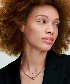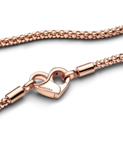 Update your jewelry collection with the Pandora Moments Studded Chain Necklace in our 14k rose gold-plated unique metal blend. This hand-finished necklace features a flexible, textured chain and an infinity-detailed heart clasp with an interior infinity symbol. This studded chain necklace can be styled with any size of the Pandora Moments O Pendant or Heart Charm Pendant. Please note the clasp cannot be styled with charms.