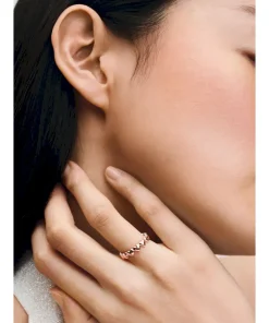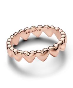 Give a gift from the heart with this 14k rose gold-plated ring. Expertly crafted with a row of hearts making up the band, this romantic design looks equally beautiful worn on its own or layered with contrasting Pandora rings. Give it as a gift for a meaningful way to express your love, or treat yourself to a piece you’ll love wearing over and over.