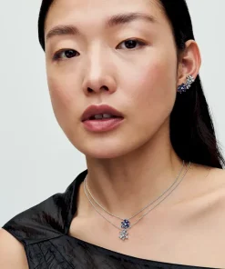 Choose nature-inspired shine with the Sparkling Blue Herbarium Cluster Pendant Necklace. Featuring beautiful blue man-made crystals in the shape of a flower, this sterling silver necklace is inspired by collections of pressed flowers. Featuring marquise, pear and round-cut cubic zirconia, this flower-shaped necklace adds elevated sparkle to every style. Layer and combine different metals (or different coloured stones) together for a look that echoes the vibrant beauty of nature.