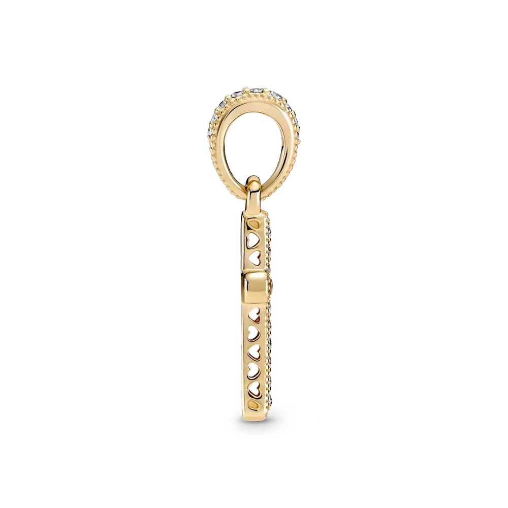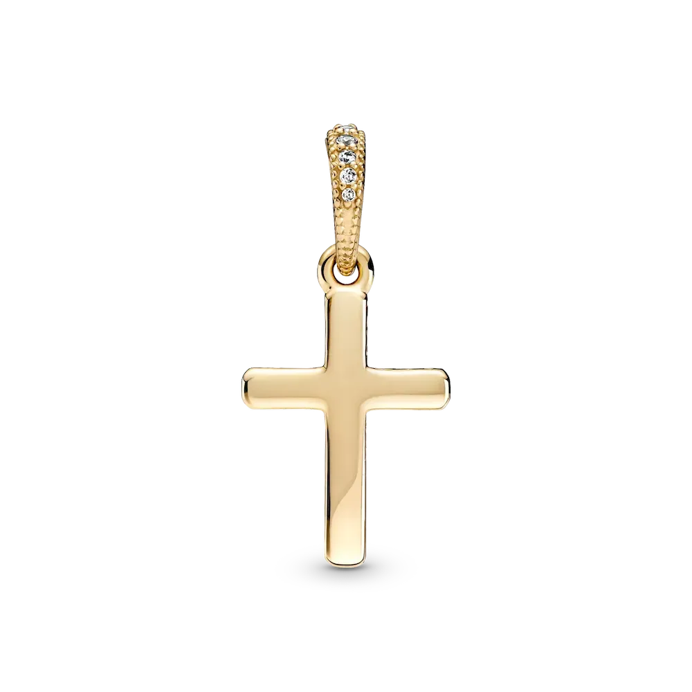Introduce a classic piece of jewelry to your collection with the Sparkling Cross Pendant. Hand-finished in 14k gold, the front of this design is set with clear cubic zirconia, with a polished reverse side. Cut-out hearts decorate the sides of the motif. Style on a simple chain for an elegant look or team with multiple 14k gold pendants for a warm-toned combination. Alternatively, gift to a loved one for a special piece they’ll treasure forever.