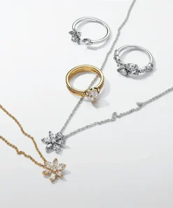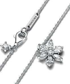 Bring the beauty of nature to your jewelry with the Sparkling Herbarium Cluster Pendant Necklace. This sterling silver necklace features a cluster of alternating pear and marquise-shaped stones around a round center stone, forming a geometric shape inspired by petal and leaf elements. An elegant reinterpretation of the shapes we find in nature, this necklace is perfect for bringing a delicate, floating feel to your looks.