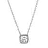Wear the ultimate symbol of eternal love, the infinity symbol close to your heart with this necklace. A curved design means the infinity symbol rises in the center, creating an eye-catching three-dimensional look while the slider clasp of the collier necklace allows you to adjust the length to suit your style. Crafted in sterling silver and featuring seven bead-set round brilliant-cut clear cubic zirconia, this is a subtle design and delicate form with unique deeper detailing.