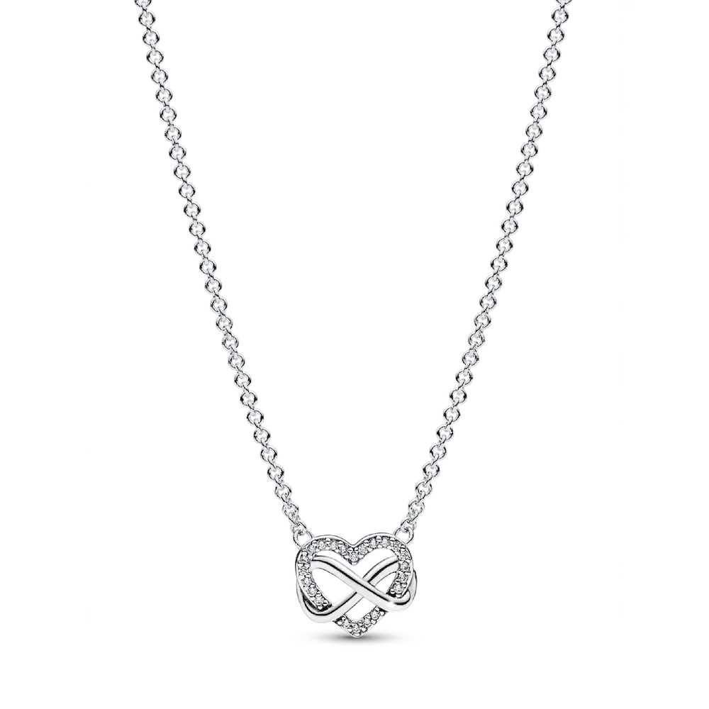Celebrate your love to infinity and beyond with the Sparkling Infinity Heart Collier Necklace. Featuring a fixed infinity symbol and heart pendant, this piece symbolizes the power of unbreakable bonds and serves as a reminder of the love you share with those that matter most to you. The openwork heart features stones along the edge of the motif and an asymmetrical infinity symbol entwining around the heart, and is adjustable to three different lengths. Wear it to show your appreciation for a loved one or gift it to someone close to your heart.