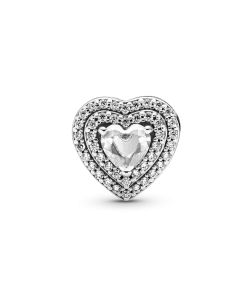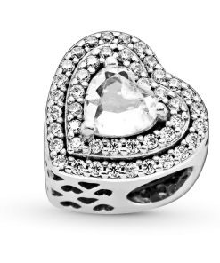 Spread the love with the Sparkling Leveled Hearts Charm. Hand-finished in sterling silver, this piece is inspired by key design features from the Pandora Timeless collection. This charm features an elevated heart-shaped stone at the center outlined by two rows of clear stones. A cut-out heart pattern features on the sides. Style this piece on your go-to Pandora Moments bracelet with simple charms in sterling silver to make a sparkling statement.