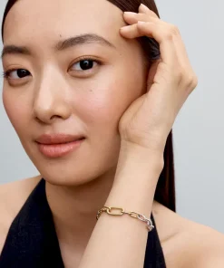 The Two Tone Lock and Key Bracelet and Charm Set is a beautiful celebration of love and connection. Featuring a blend of two metal tones, this customizable link chain bracelet allows you to add up to eight mini dangle charms or two medallions for a truly personalized look. Paired with the Engravable Padlock and Key Dangle Charm, this set symbolizes trust and affection. Crafted in 14k gold-plated metal, the padlock can be engraved with a special message, while the key represents the love shared between two hearts. Gift this set to someone special or wear it as a reminder that you hold the key to each other’s heart.